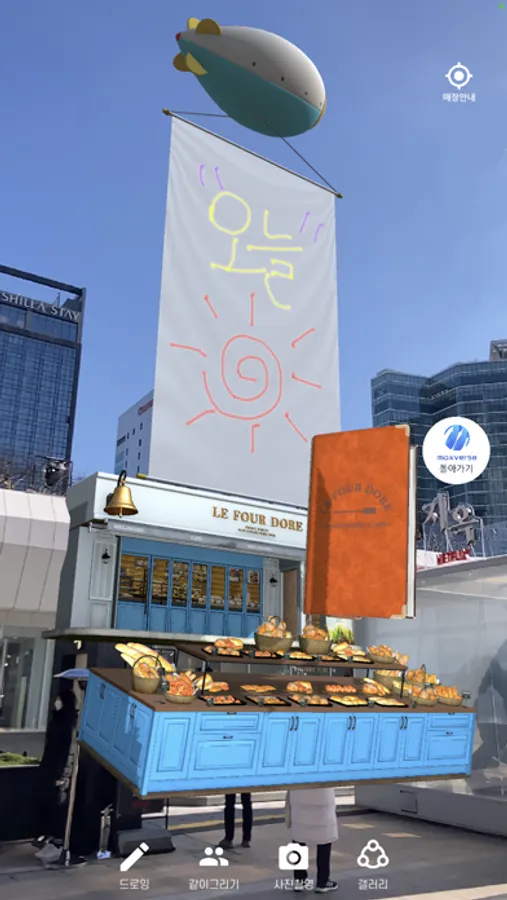 - 그림을 그리는 동안 주변 매장 광고들이 다양한 형태로 정해진 AR 광고 영역에 노출됩니다.