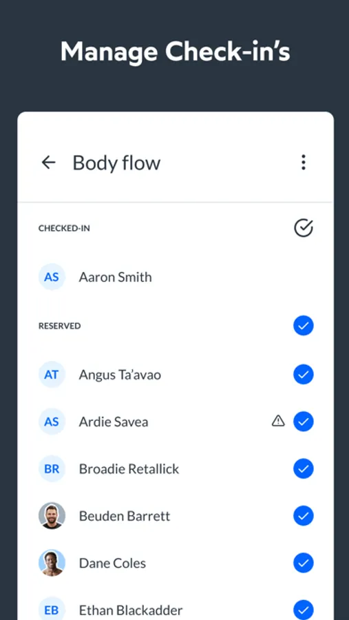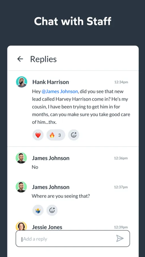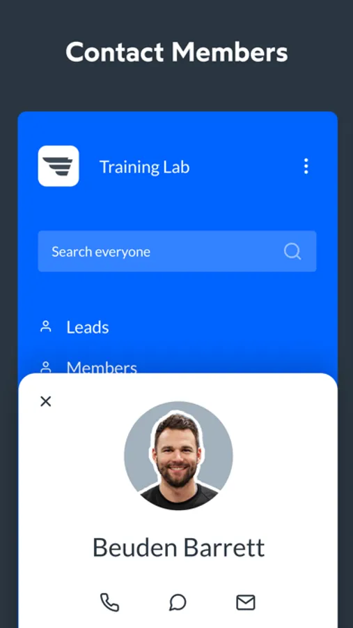 The PushPress Staff App is the go-to place for your staff members to complete key tasks. They can look up and contact any member or lead, manage check-ins and waitlists for classes, and chat with other staff members through DMs or group messages.