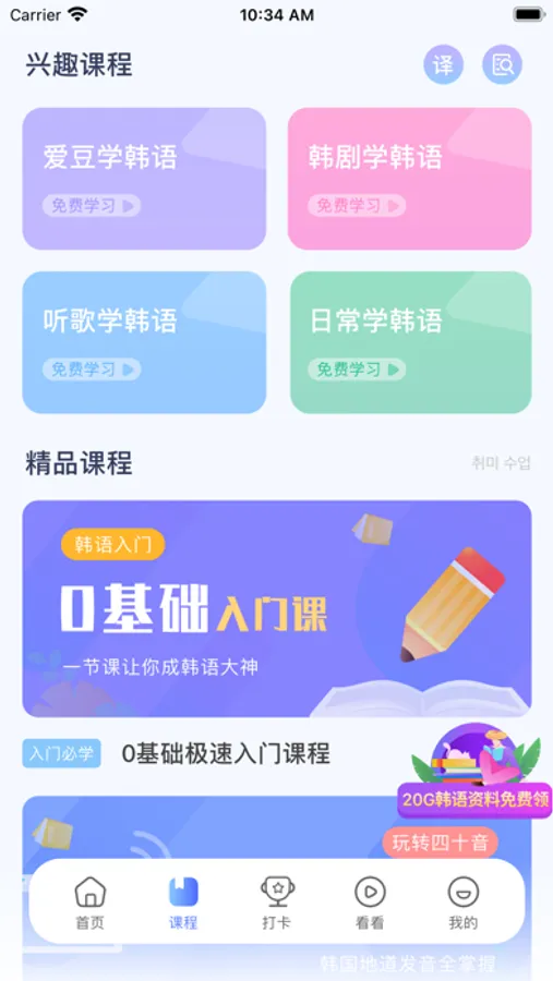 你能学到啥?【四十音图发音表】21个元音,19个辅音,拼读发音表模块,辅音与元音快速组合,找到自己想要的发音。发音关卡挑战,学习与挑战并存,让学习不再枯燥【韩语翻译】为了方便您在韩语场景下使用,我们偷偷内置了韩语人工智能翻译的功能。【配音秀】追爱豆,为爱打CALL,看韩剧听韩语歌,开心学地道韩语!【随时随地学韩语】乘公交地铁背单词,你真正的口袋韩语,随时随地,想学就学!【韩语学习】韩语学习背单词功能,也帮您收集了大量的韩语语法、韩语教程、韩语教材等大量韩语学资料。【韩文基础发音及口语教学】以韩语入门必学的韩文字母发音以及对应的单词例子,还有日常对话常用用语为基础,精心详细编排教学。以听、说、练的方式,让同学们在最短时间内,快速掌握韩语发音。【零基础韩语入门】韩语起步速成!韩语学习快速入门,韩语发音词汇入门,韩语发音单词学习,韩语词汇免费学,真人韩语发音,精准指导韩语口语和韩语发音!【真人教学】TOPIK考级专业教学,口语、应试能力得到快速提高。