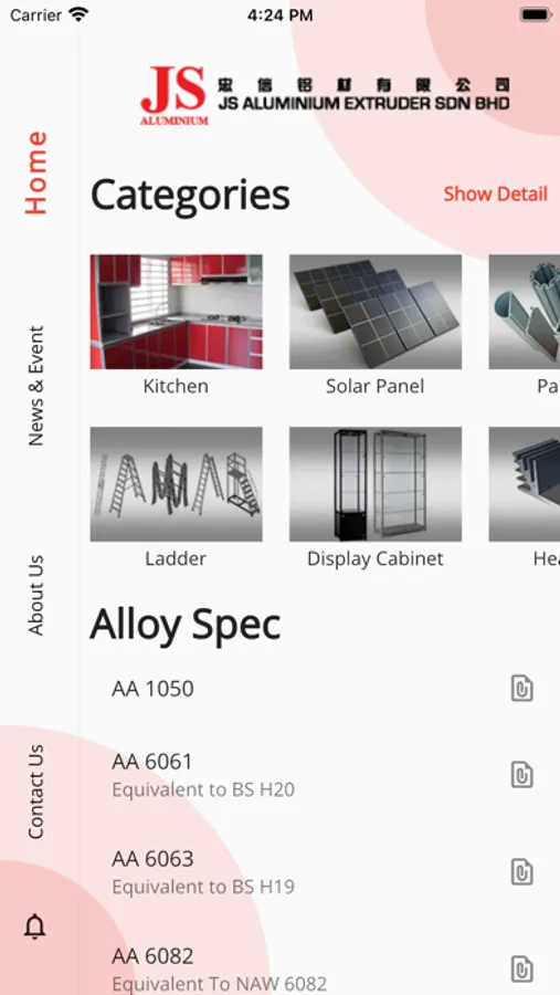 Js Aluminium Mobile App, allow user to view company products information, get latest news and update via push notification.