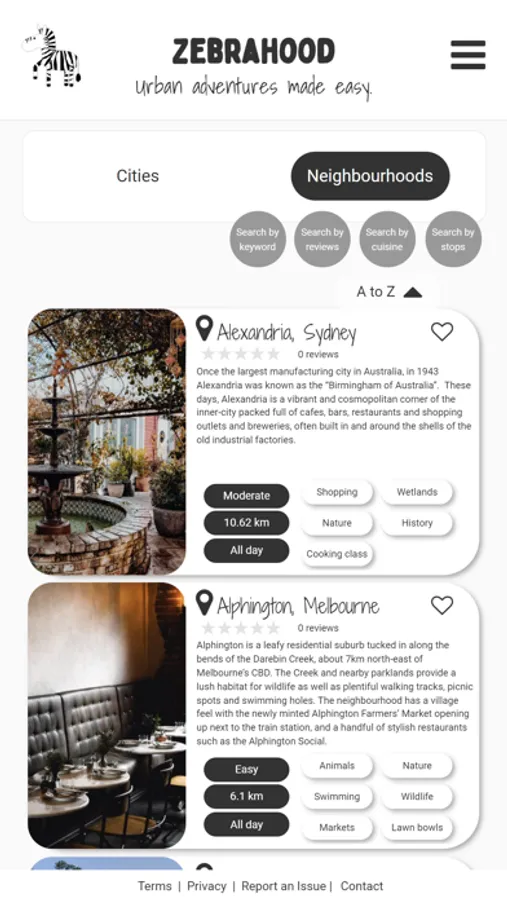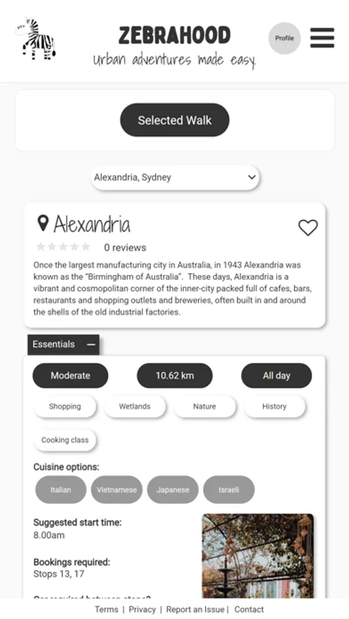Zebrahood aims to simplify this process by asking locals to curate “ideal days” in their neighbourhood, complete with all meal and coffee stops, activities (think: hikes, day spas, ghost tours, magician cabarets, kayaking, live music and much more!), and the perfect walking route to piece it all together. We will also incorporate details like opening hours, embedded menus and booking links to make the process as easy as possible. Zebrahood makes urban adventures easy.