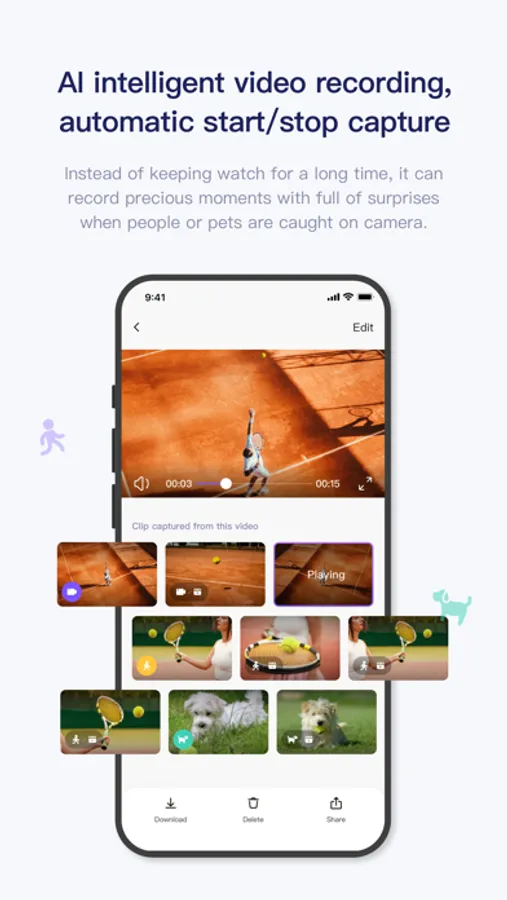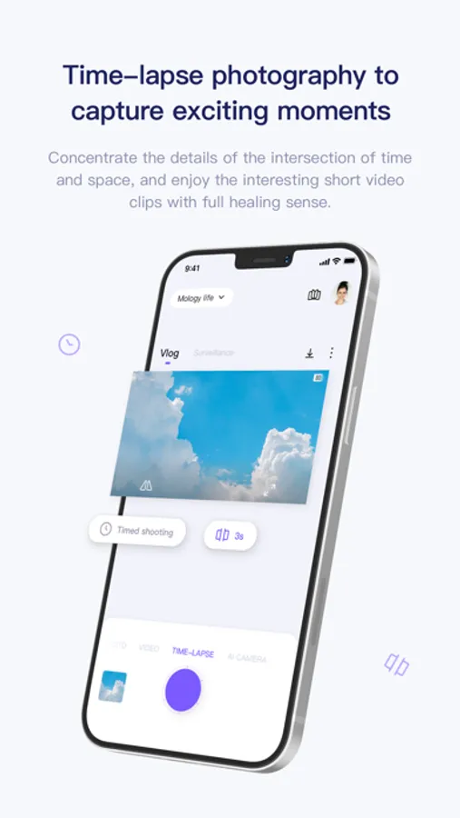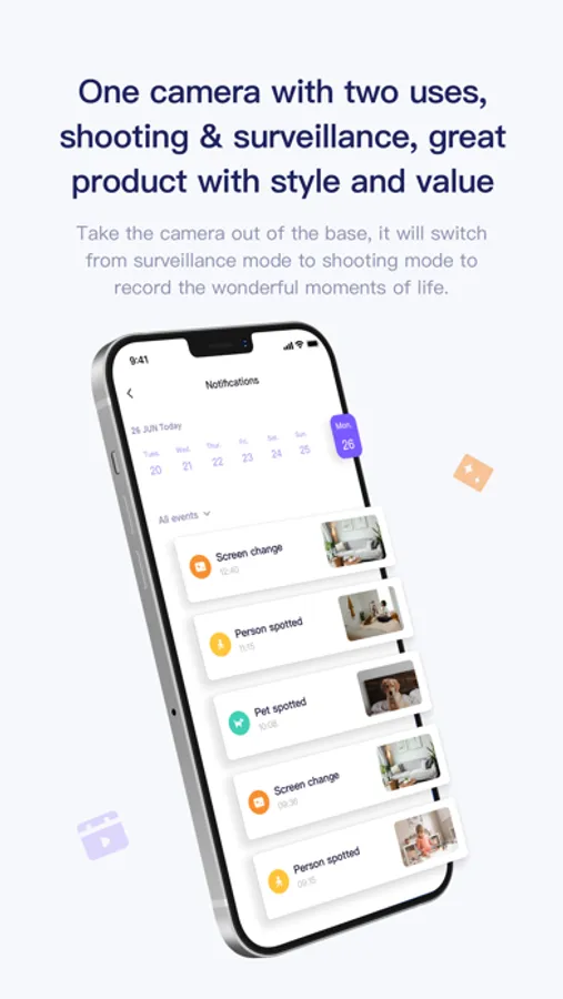 Creative shooting and home surveillance are available with this dual-purpose camera, which can not only take photos of your family, pets, scenery, but also selfies. The dual modes of shooting and surveillance can be switched at will, and the whole process can be remotely controlled visually using the large mobile phone screen, and it offers a more concise and convenient video creation experience, and video sharing is one step faster.