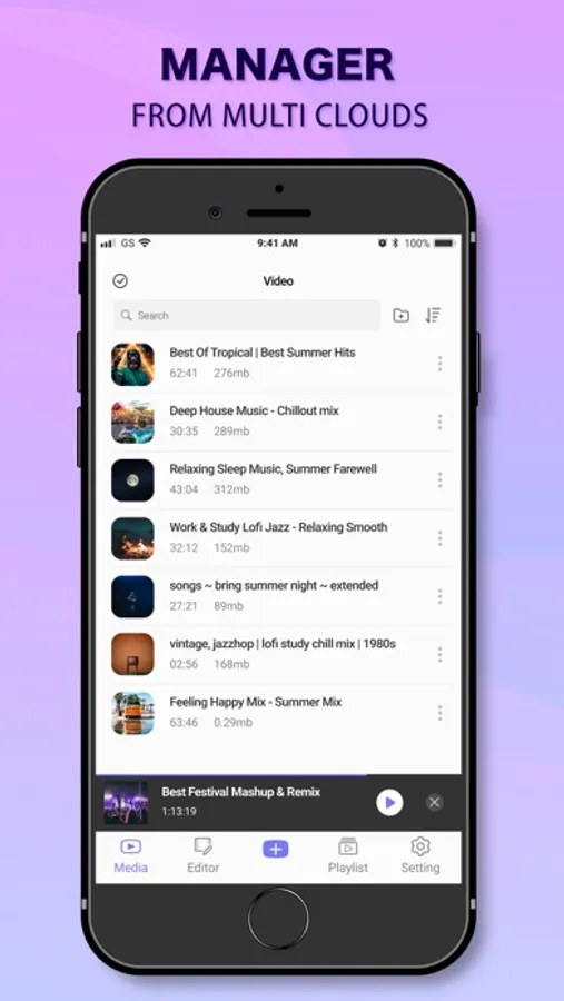 It's an application that helps you manage your multimedia files for all the clouds easily for quick viewing or editing on your iPhone, iPod Touch and iPad.
