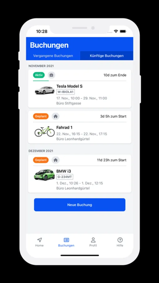 ibiola fleet ermöglicht flexibles, zeit- und ortsunabhängiges Buchen, Reservieren und Öffnen von Fahrzeugen mit einer User Experience die Spaß macht. Auf den Sharing-Pool kann per App ohne Papierkram zugegriffen werden. Schlüsselloser Zugang zu allen Fahrzeugen bietet größtmögliche Flexibilität. Damit eröffnet ibiola völlig neue Dimensionen der betrieblichen und öffentlichen Mobilität – und das zuverlässig, rechtskonform und innovativ. Die folgenden Features sind enthalten: