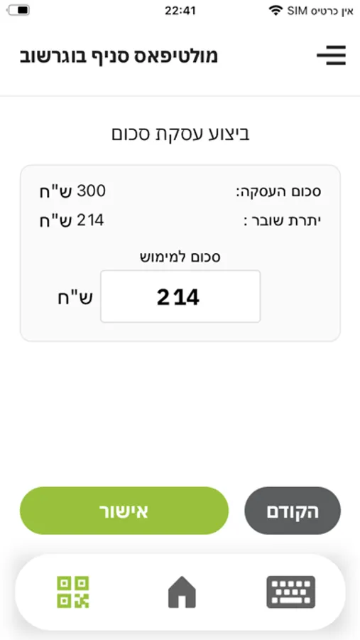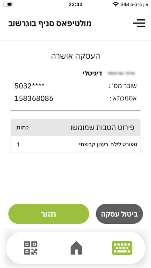MultiPOS תומכת בשוברים דיגיטליים באמצעות קריאת הברקוד או QR עם מצלמת הטלפון הנייד/טאבלט או בהקלדה ידנית של קוד השובר.