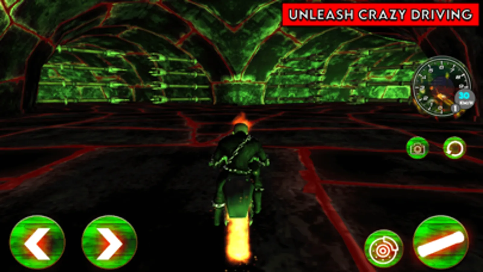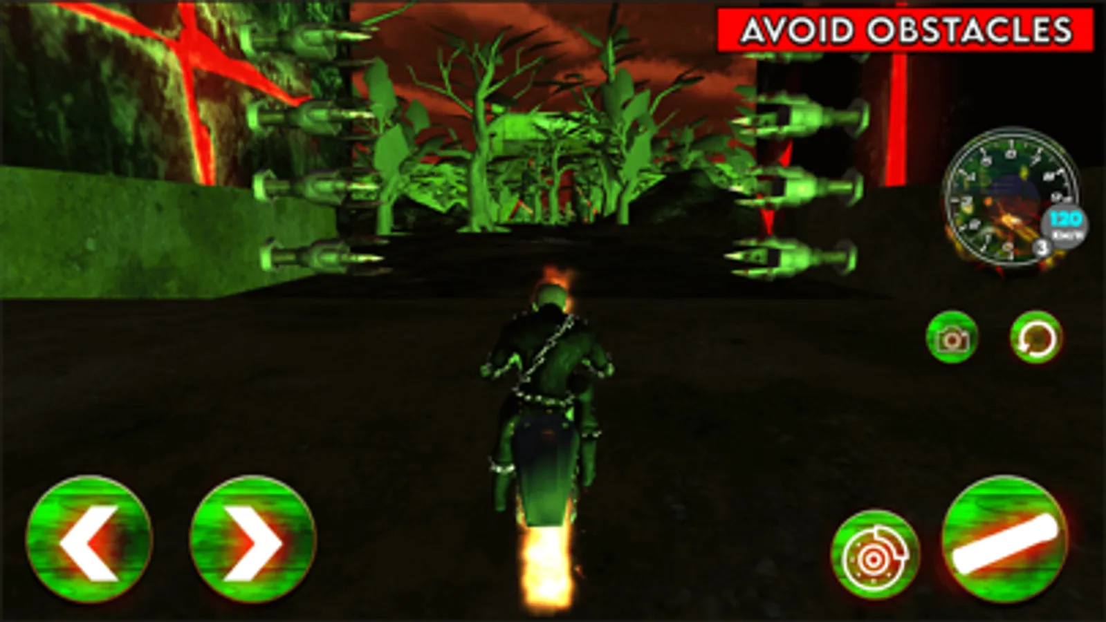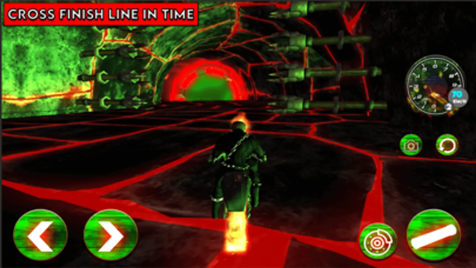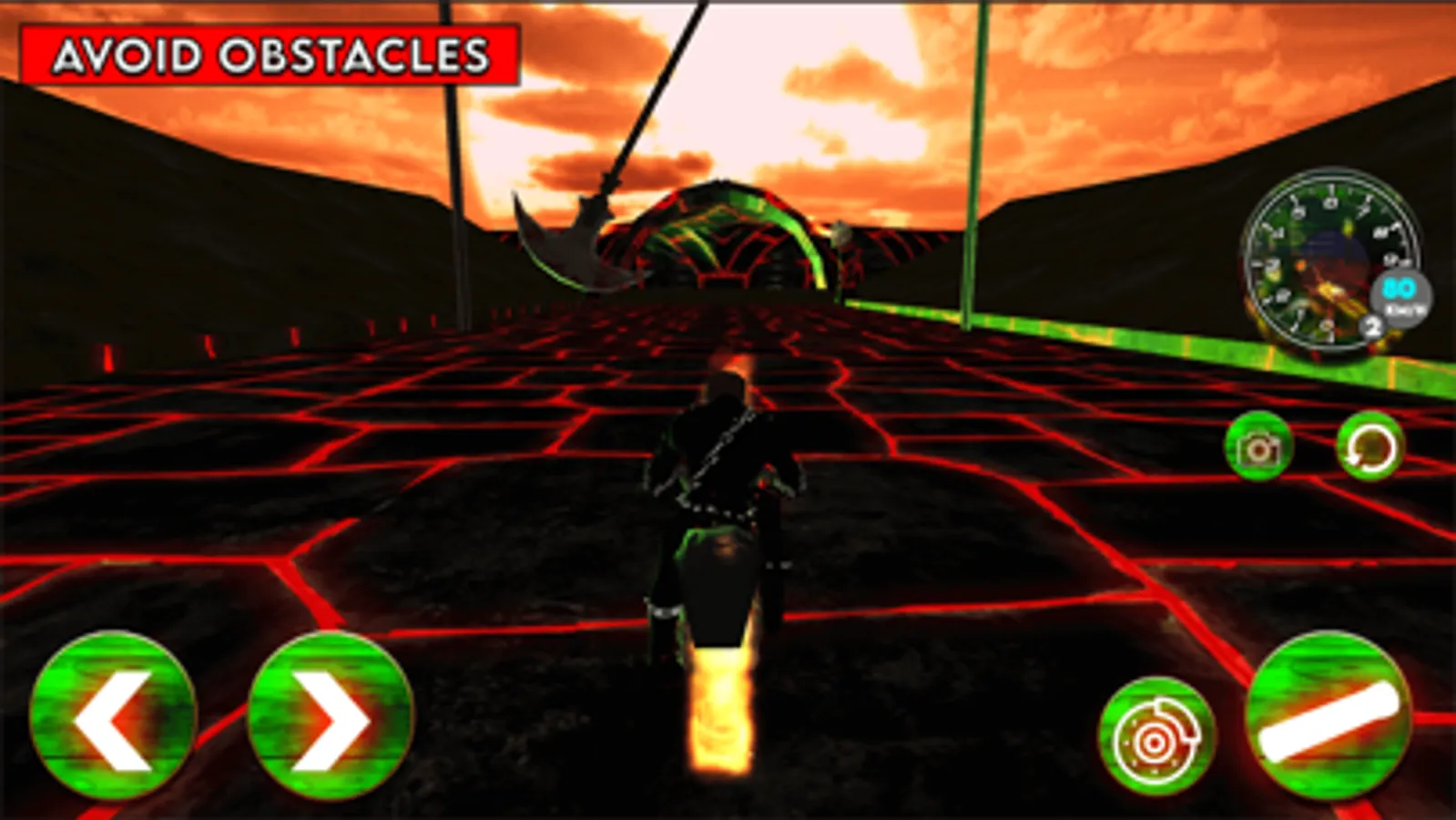 Welcome to the Scary ghost bike ride game and explore the dark underworld Devils Moto tracks where you can play as a 3D skeleton driving simulator. Jump over the sky-high short rooftop tracks with deadly bike stunts, accelerate on top of the crazy mega ramps that are filled with various unchained obstacles like pounding hammers and fireballs that are out to attack you. Drive fast like a superhero bike driver through amazing bumpy tracks and loops in this extreme moto racing game.