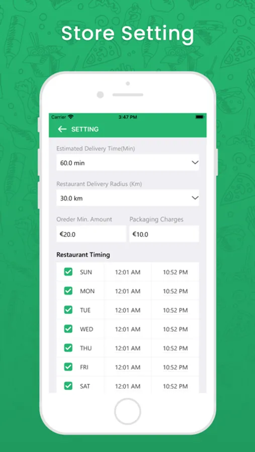 - Manage store details like store time, manage product status, packaging charge, delivery radius, minimum order amount, Estimated delivery time, and more