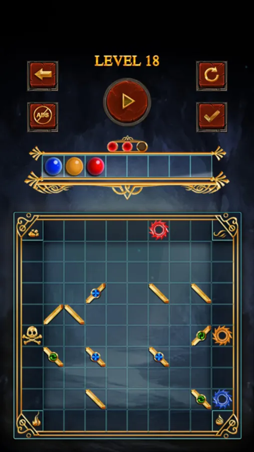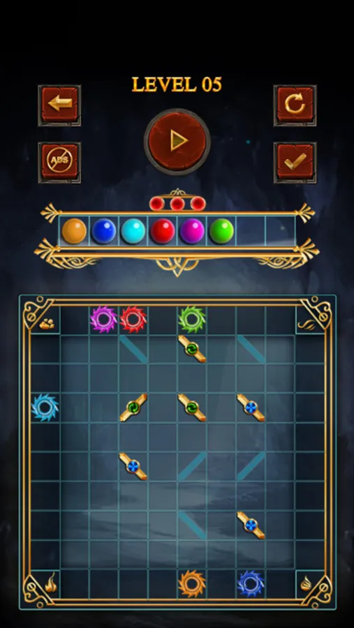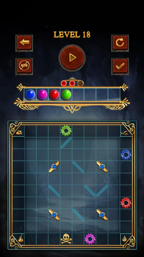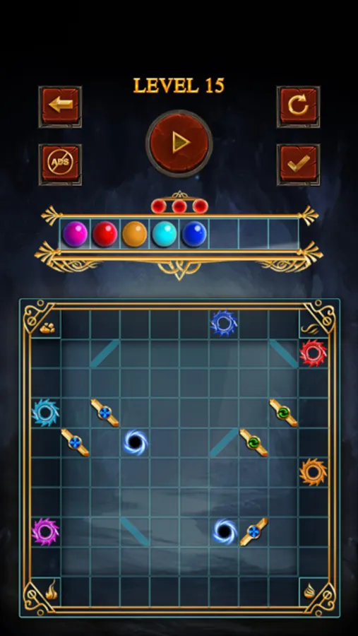 Try to place all the marbles the their own target destinations at an order, by using their reflections from couple of mirrors.