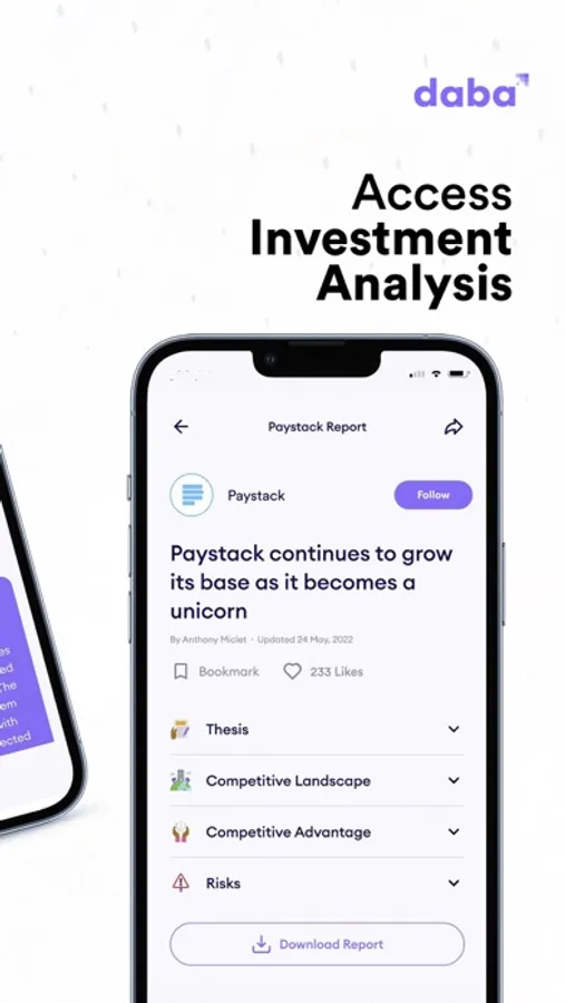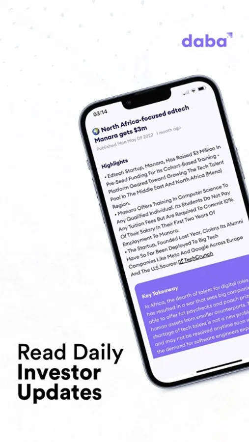 daba is a simple app that allows you to discover, invest and track Africa’s best investment opportunities. Investing in and out of Africa’s public and private capital markets has never been easier. Access investment strategies and build wealth by investing in Africa today.