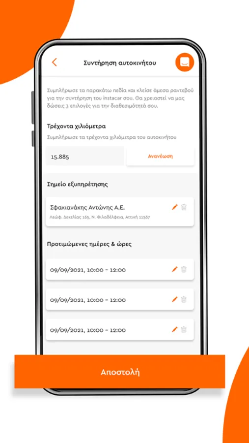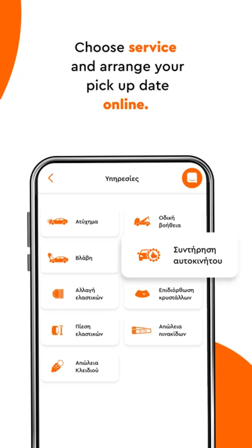 You can select the type of vehicle damage (engine light indicators, air-condition malfunction, headlights malfunction, breaks malfunction, engine oil indicators, exterior damage, side view mirrors damaged, other) and submit your request.