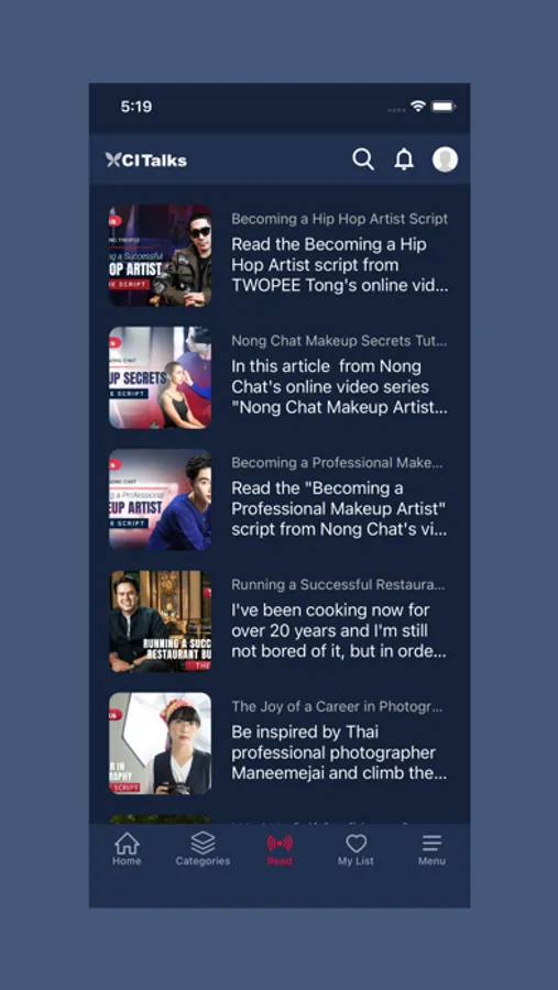 CI Talks is a modern media company that engages a growing audience on digital, mobile, and streaming platforms. We create video content and original programming in a variety of categories that we share with an engaged, passionate and progressive community of people who have one thing in common: they want to know how to find inspiration.