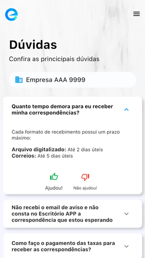Você poderá fazer a gestão das suas correspondências solicitando arquivo digitalizado ou envio pelos Correios e ainda avisar sobre a retirada ou descarte da correspondência. Poderá também visualizar suas faturas de forma rápida e prática!!