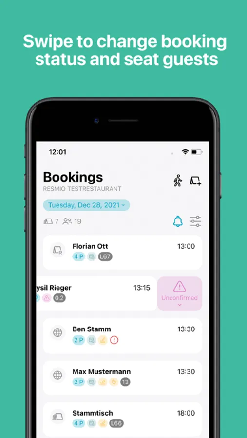 - Change status of bookings with swipe gestures