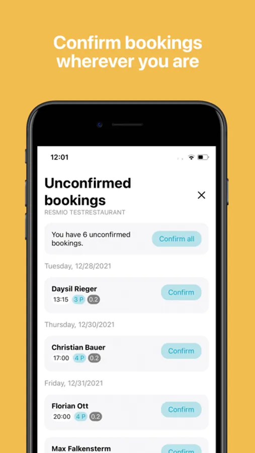 The resmio app makes it easy to manage reservations and guest data. Your staff can easily take reservations, seat guests and overview all guest information. The cloud-based database makes saving guest preferences as well as accessing reservations from different devices easily possible.