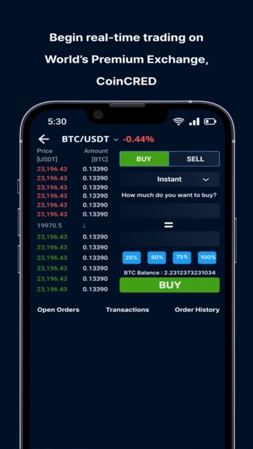 CoinCRED prefers to provide users easiness. The signing or registering process on the CoinCRED Crypto Trading platform is effortless. You can sign up with your registered mobile number and one-time password through our simple user interface app.