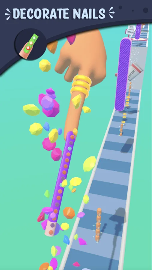 Simple but addicting gameplay and visual feedback will make you happy. Funny gameplay will bind you! Show them who is the best for collecting fancy nails without.