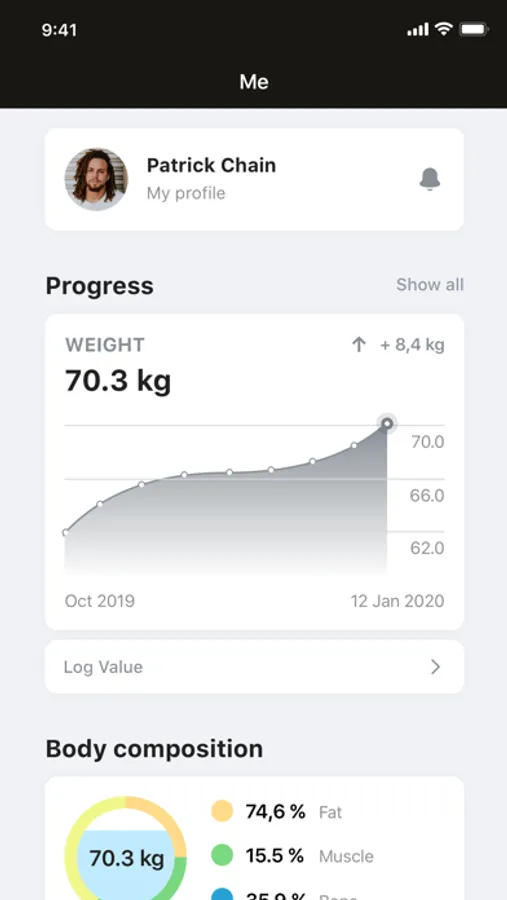 - Accede a los datos de tu composición corporal y observa tu progreso.