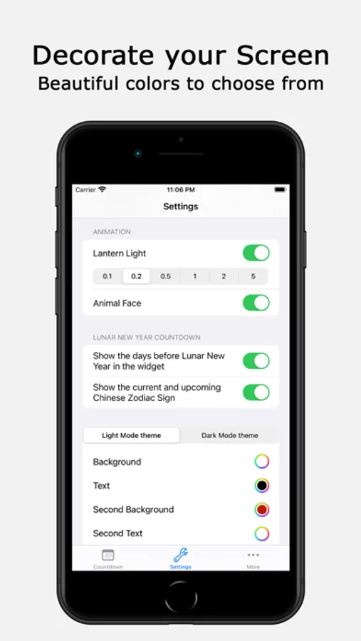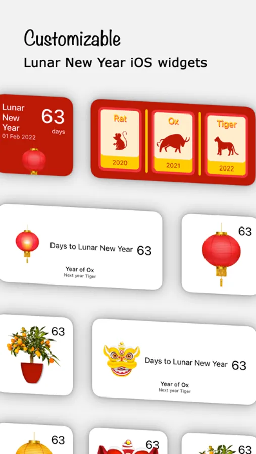 ◆ Change the attribute to a lantern, kumquat tree, or lion in the app and widget