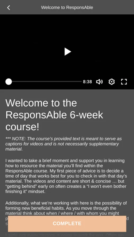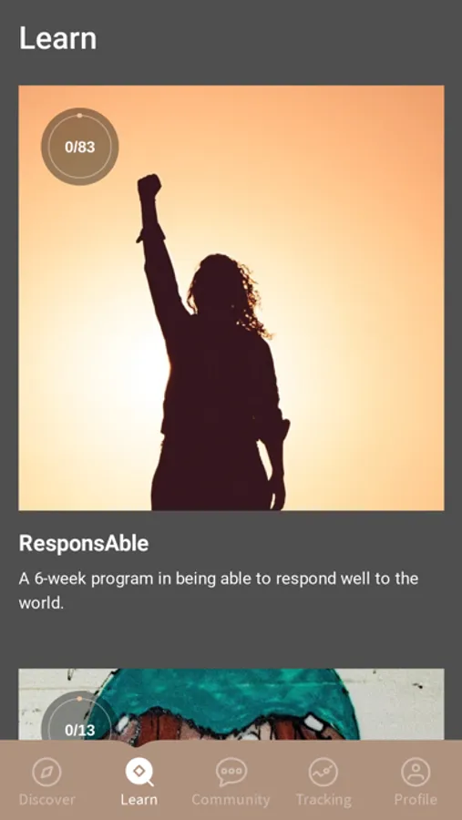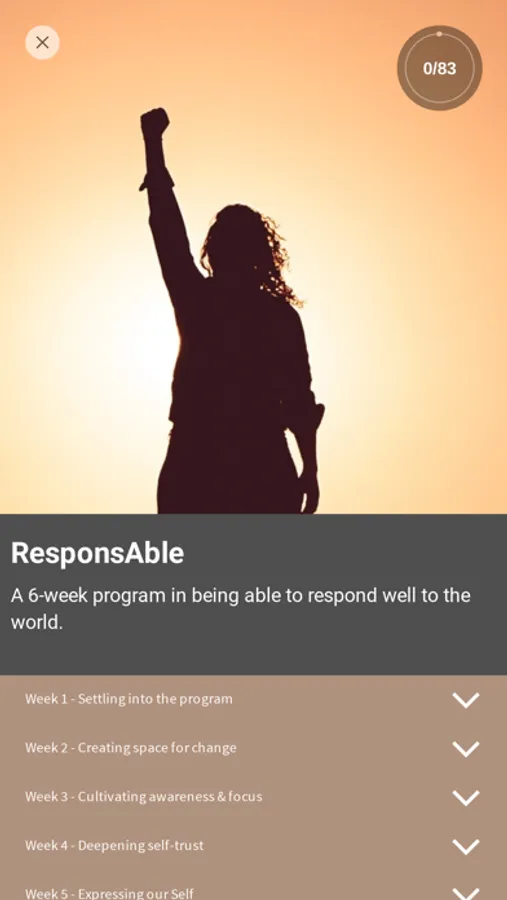 * ResponsAble - A 6-week program designed to help users "respond better to the world around them" through stress management & psychological fitness tools / foundational movement practices / guided visualizations / and an integration component designed to help implement new skills into daily routines.