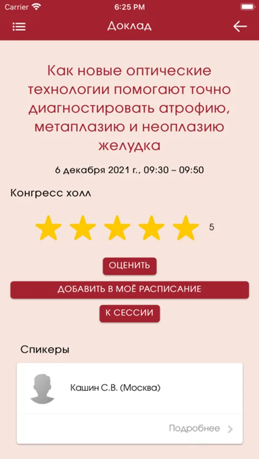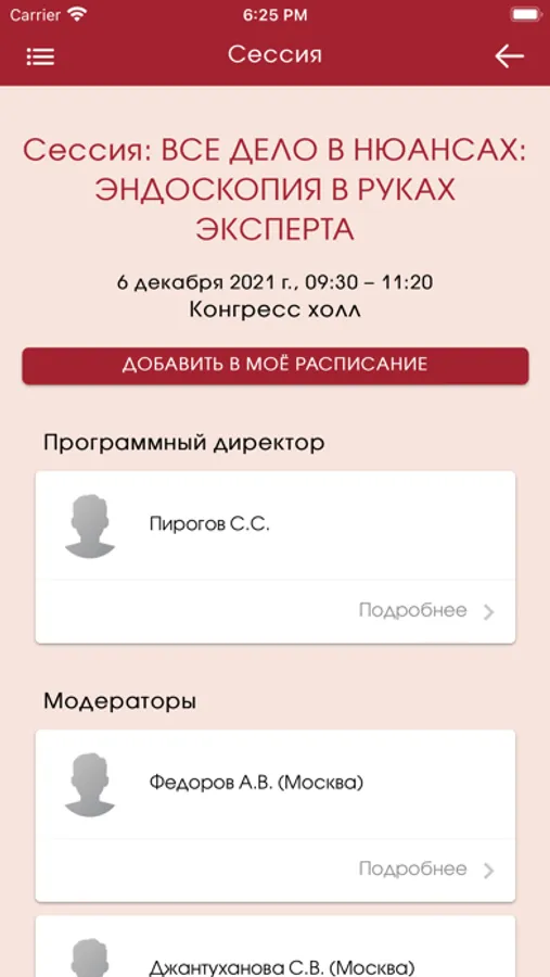 • Список Экспертов и Спикеров с индивидуальными расписаниями