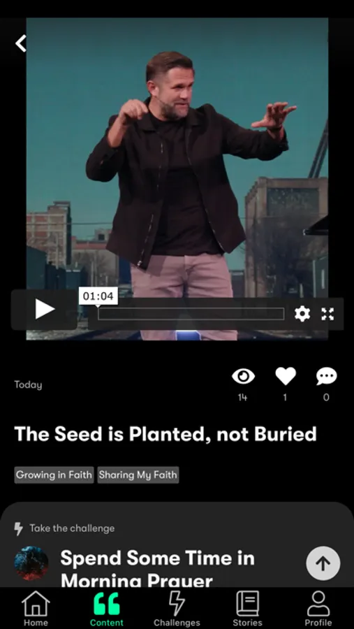 The One at a Time app helps bring the weekly sermon to life in daily devotionals, each designed to help you live out the teaching one relationship at a time. Accept the weekly challenges to help bring faith to life and share stories of how 1X living is impacting your life.