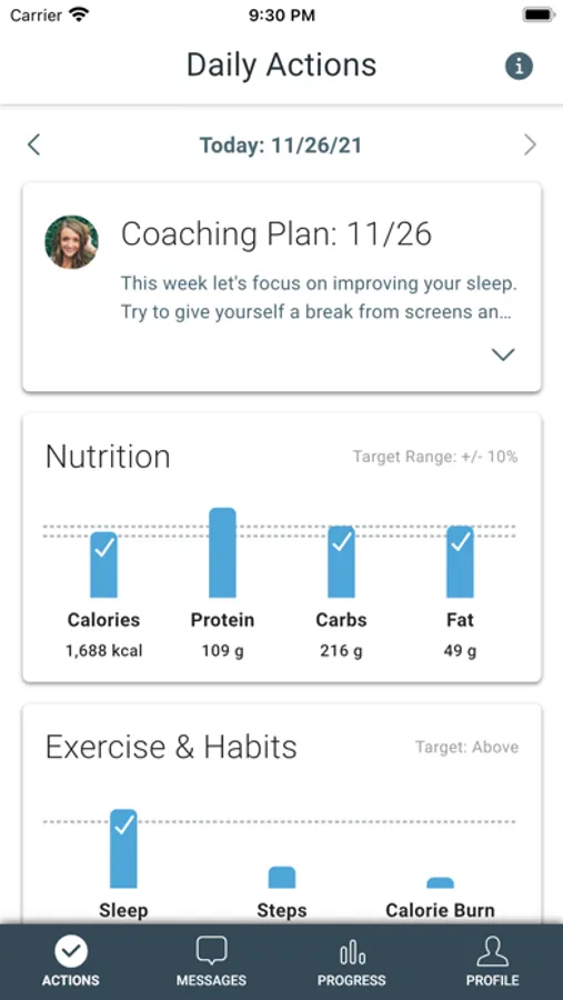 Coaches can set targets for calories and macronutrients eaten, hours slept, steps taken, and calories burned each day.