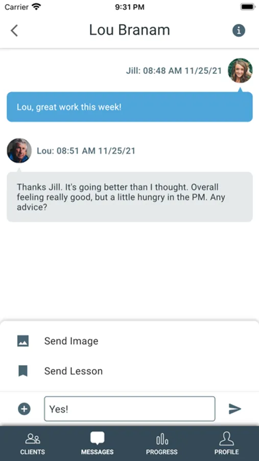 Make yourself accessible to clients, and maintain boundaries by communicating with our private integrated messenger. Both clients and coaches can send links and images. Coaches can also send lessons from the integrated library.