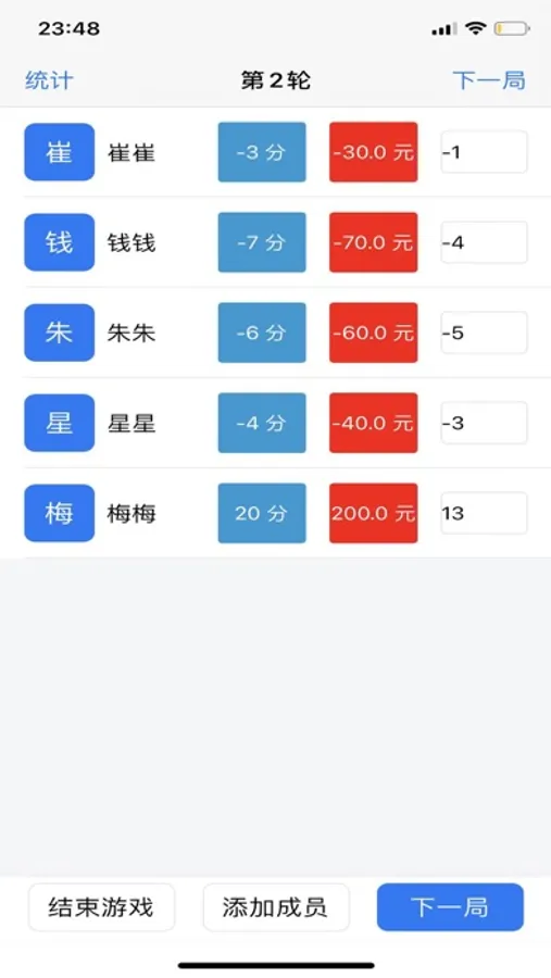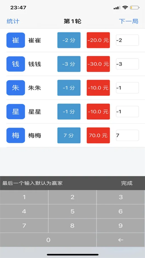 在玩干瞪眼游戏过程中,可以方便的计算和记录每个人的分数,非常的方便,不需要再手动计算分数