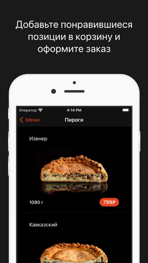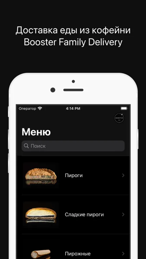 Как сделать заказ в приложении “Booster Family Delivery”: выберите понравившиеся позиции из меню, добавьте их в корзину и перейдите на экран оформления заказа (по нажатию на иконку корзины).