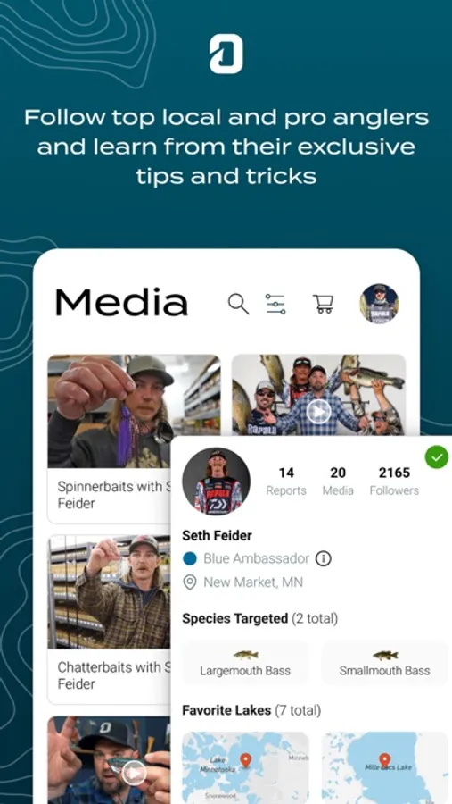 Choose to receive the updates that are important to you. Get a heads up when your lake’s water temperature changes or when new fishing reports are available. Follow your favorite brands and ambassadors to get helpful tips and technique videos. You stay in the know while remaining in control of your experience.