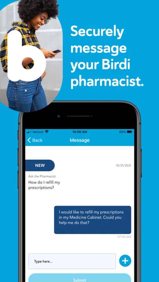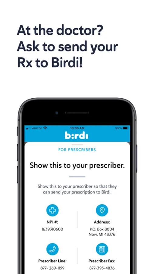 At Birdi, we are working to create the best online pharmacy experience and would love your feedback. Contact us at mobiledev@birdirx.com or 855-247-3479.