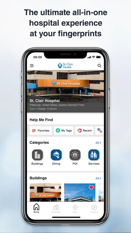 The Wayfinding application will be valuable regardless of whether the user is heading to St. Clair Hospital, the Dunlap Family Outpatient Center or the Professional Office Building or simply trying to decide where to park. Users may save their parked car location to return to their car after their visit.