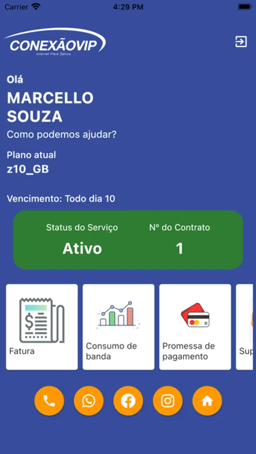 No app da Central do Assinante CONEXÃO VIP você pode:
