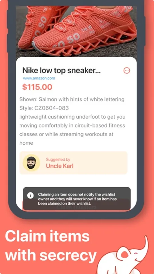View others' wishlists and secretly claim items from their list to tell others that you got it. The recipient never finds out until you give the gift in person! Give the gifts that matter without the headache.