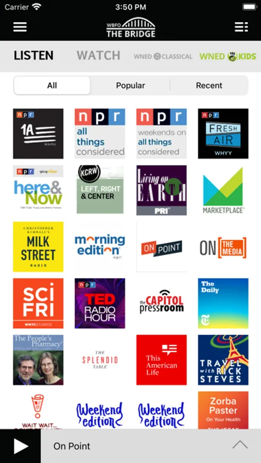 The Bridge app connects you with additional streams from Buffalo Toronto Media. Listen to WBFO, WBFO JazzWorks and WNED Classical, watch the WNED PBS livestream and programs from the WNED PBS library. You can explore On Demand content, bookmark a program for later, and wake up to The Bridge with the alarm clock! Use the app to send us voice messages, and you might hear yourself on the radio! You can also enable push notifications to stay up-to-date on the latest news and information.