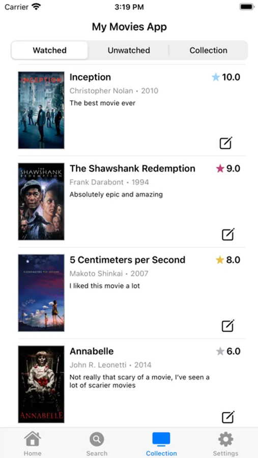 MyMoviesWatchList is a simple app designed to make keeping track of movies easy.