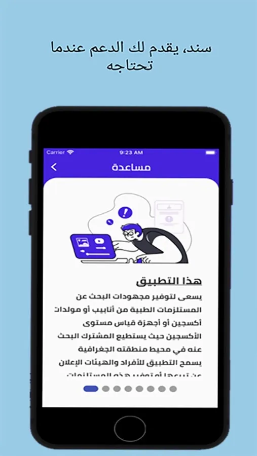 هذا التطبيق يسعى لتوفير مجهودات البحث عن المستلزمات الطبية من أنابيب أو مولدات أكسجين أو أجهزة قياس مستوى الأكسجين حيث يستطيع المشترك البحث عنه في محيط منطقته الجغرافية.