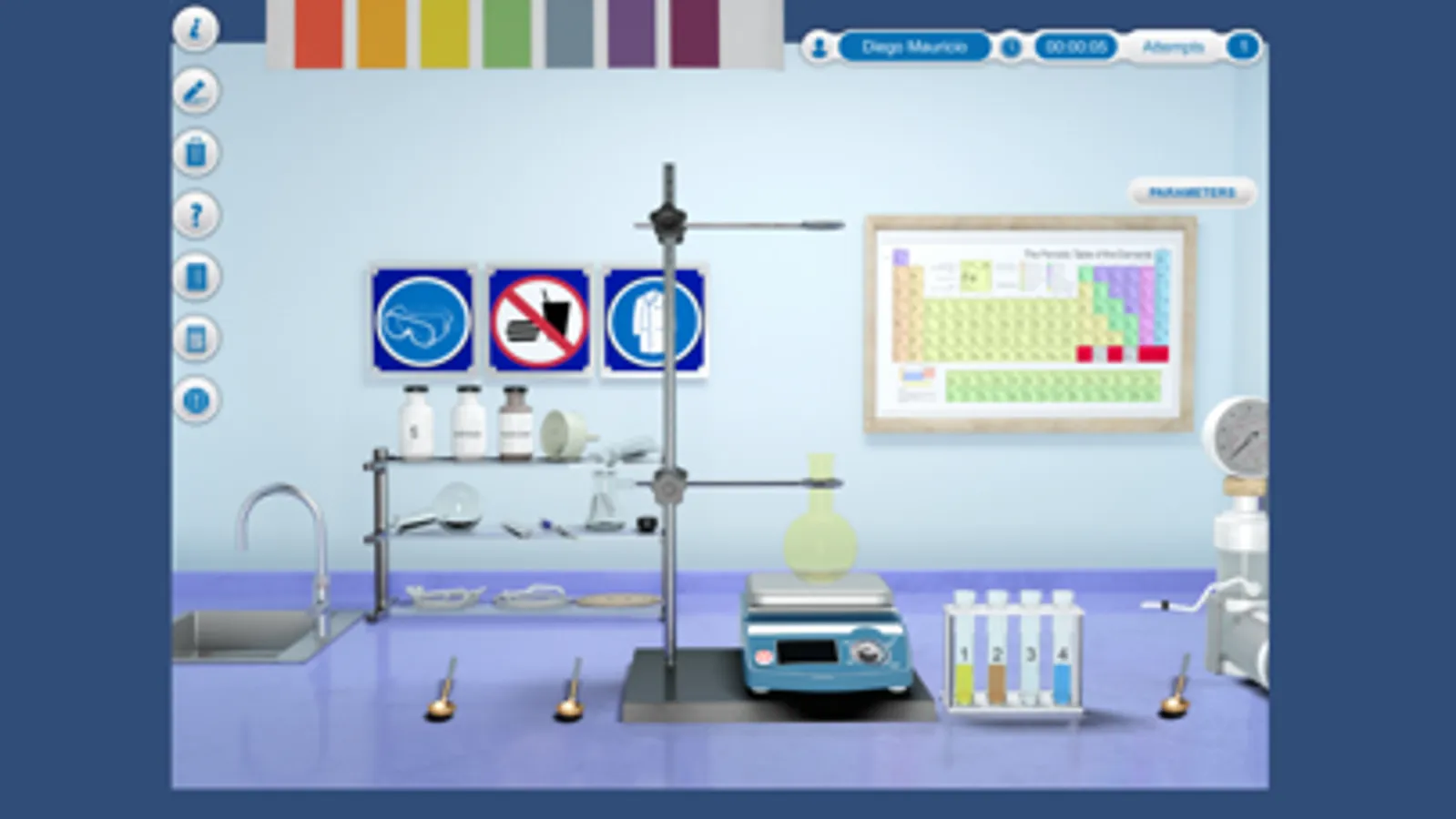 In this practice it is possible to carry out the synthesis of 4-nitroaniline used as a reagent in the determination of the Kamlet-Taft parameters of solvents. To carry out the synthesis, sodium hydroxide in ethanol, p-dinitrobenzene and solid sulfur are available. The simulator recreates a chemistry laboratory with a reaction balloon, a condenser, refrigeration hoses, a Buchner funnel, filter paper, and a compressor, among other instruments and supplies necessary to carry out the synthesis.