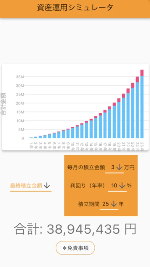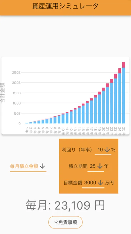 ・本シミュレーション及び掲載された情報を利用することで生じるいかなる損害(直接的、間接的を問わず)についても、当方は一切の責任を負うものではありません。実際の資産運用や投資判断に当たっては、必ずご自身の責任において最終的に判断してください。