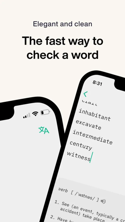 Easy to load, the dictionaries are locally stored in your phone for a quick database search. An accessible dictionary app to have by your side at all times, with your findings stored for future consultations. Elegant and simple.