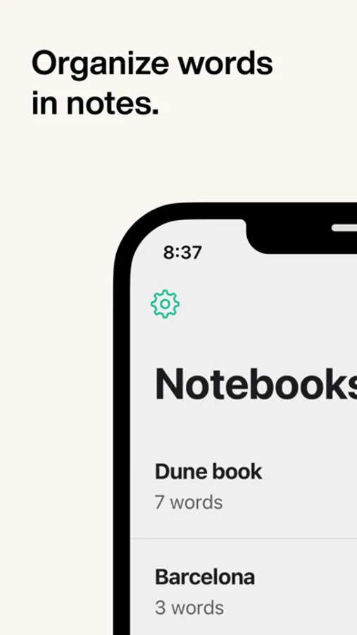 A simple and elegant notebook to write new words and discover their meanings and synonyms. Open a new note, whether if it's for a specific book or for a new language you're learning, write the word you're looking for and see its definition and synonyms. The word is listed there so you can go back to your note and review your recent learnings.