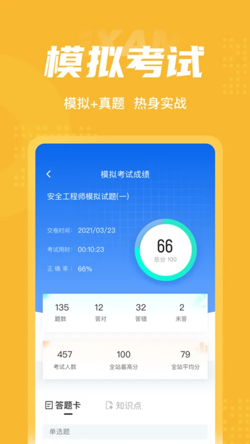 安全工程师题库内含考点练习,全国通用卷以及地区卷模拟练习,以及按照固定考试比重的随机式的抽题的真题考场,成绩单实时记录考试数据,一点一滴的反馈考生近期学习状态以及自我正确率的提升,大大的给予考生通过考试的信心。