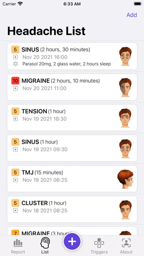 Patterns identified from these Headache + apps may help your doctor determine which type of headache you have and the most beneficial course of treatment.