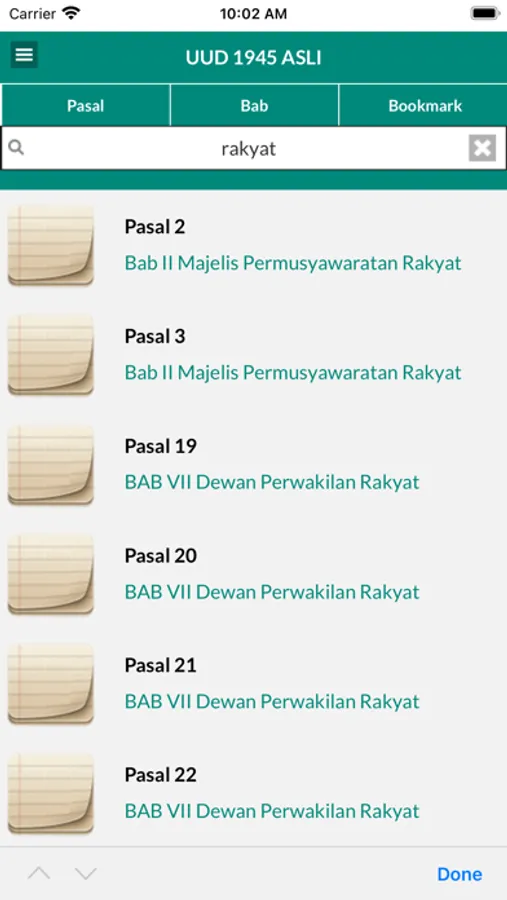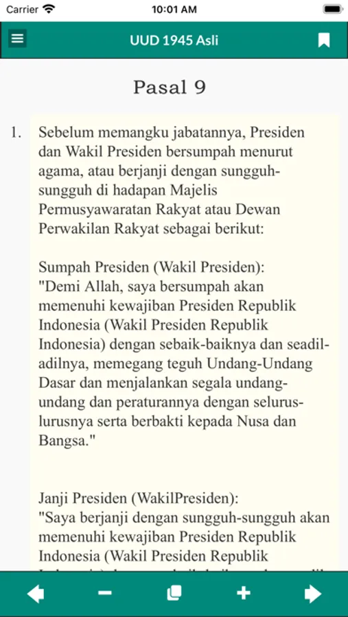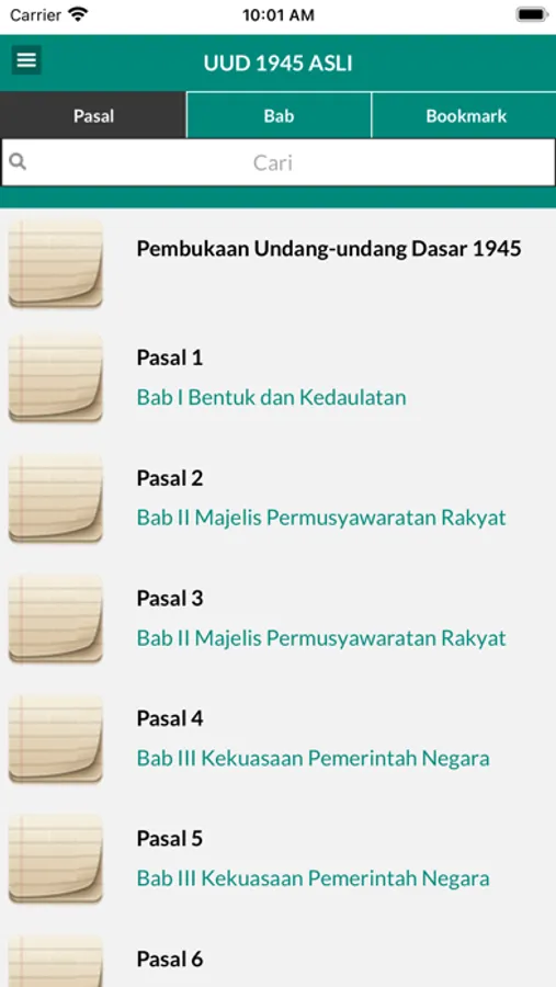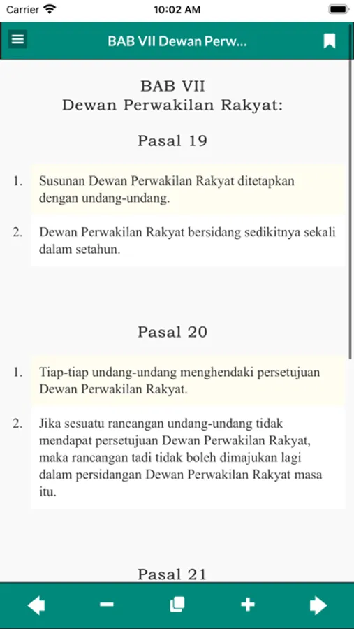 UUD 1945 merupakan aplikasi yang berisikan undang undang 1945 versi asli dan versi amandemen/ perubahan. Anda dapat menggunakan fitur pencarian pasal, merubah ukuran font, bookmark pasal, copy pasal, dan fitur menarik lainnya.