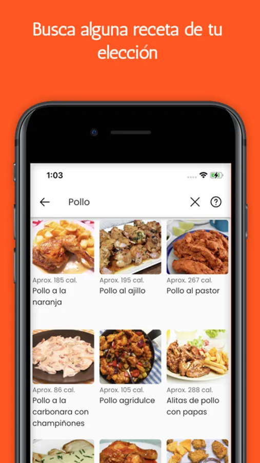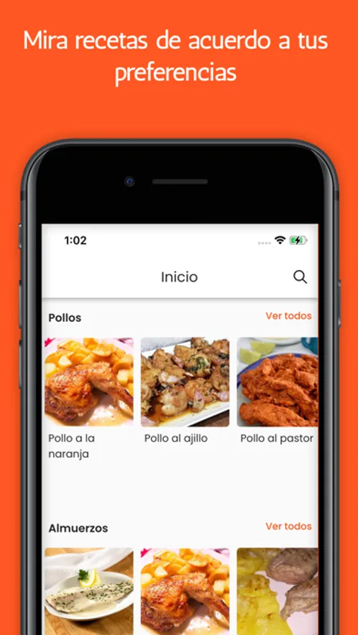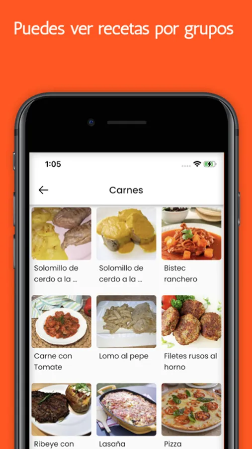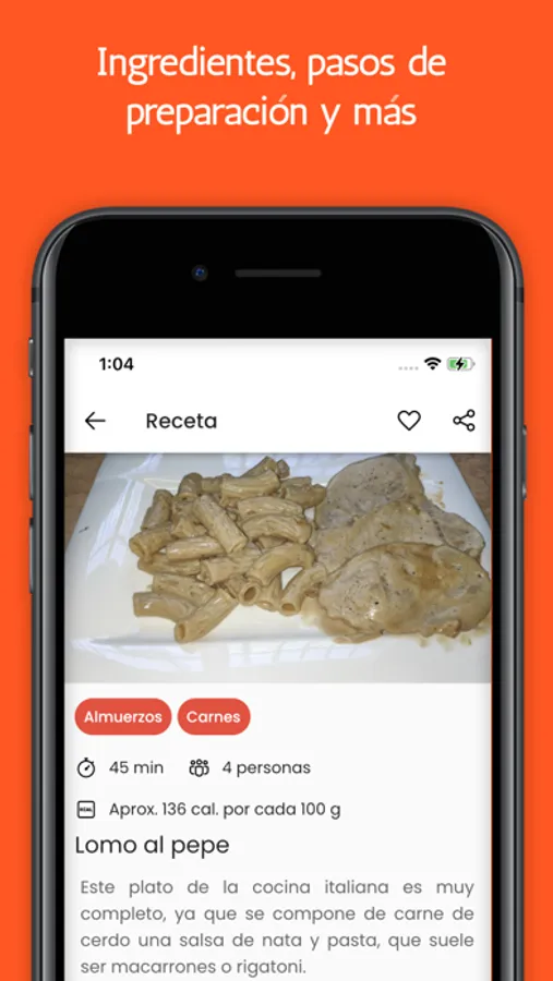 La aplicación incluye una sección para buscar platos fuera de tus preferencias, puedes guardar favoritos, ver recetas por categorías y grupos, ¡y puedes investigar que recetas puedes preparar según con los ingredientes que cuentes!