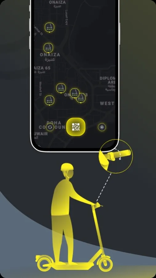 - Open the app to find nearby scooters.