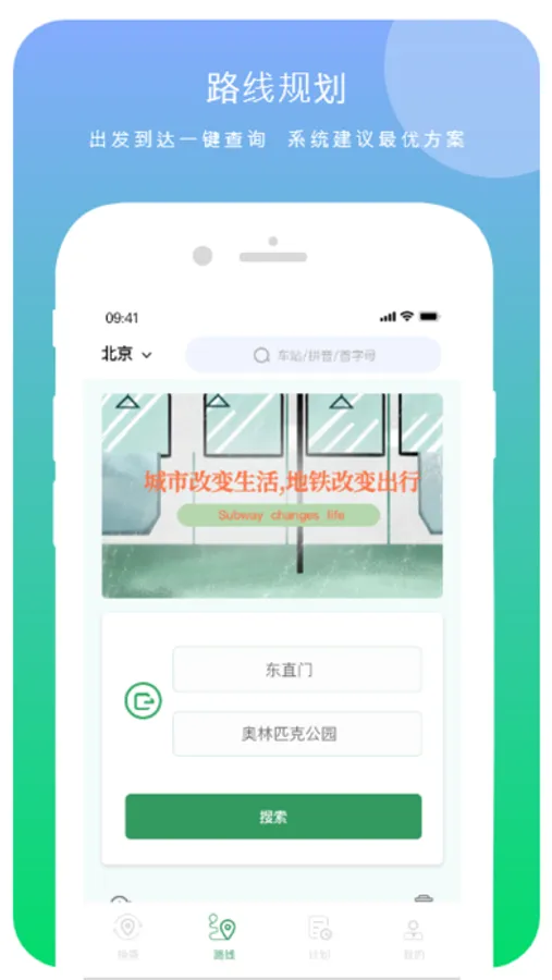 一键输入起点和终点,系统智能规划和推荐,展示地铁换乘、公交换乘、地铁+公交多种模式的路线规划,为了提供最优出行方案,并可以保存和分享。