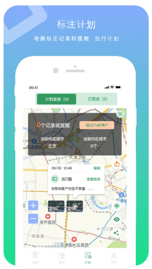 开发地图标注的核心功能,您可以讲出行规划,在地图上标注,包括日期、行程安排、交通方式、图片展示等,同时可以切换多种地图展示模式,该服务可以很好的记录和提醒您的出行安排。