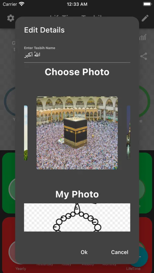 - Upload any of your favorite Pictures for any of the Tasbih