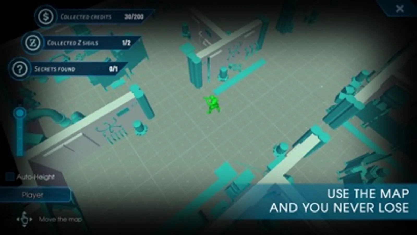 Detailed 3D map with a visual menu of found game bonuses and secrets;